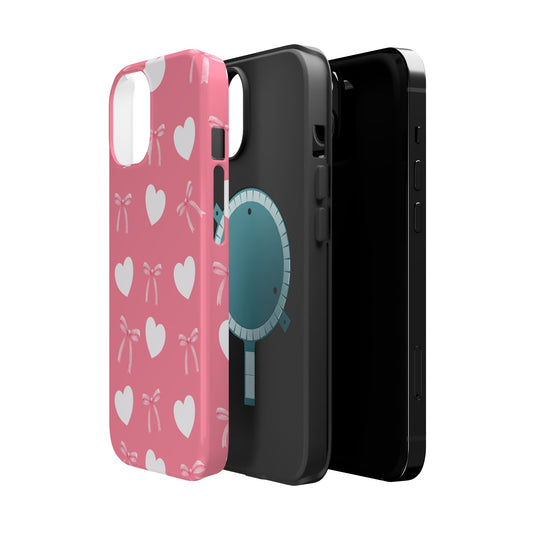 Pink Bows & White Hearts MagSafe iPhone® Case