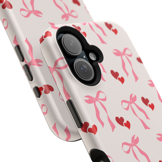 Pink Bow & Red Hearts MagSafe iPhone® Case