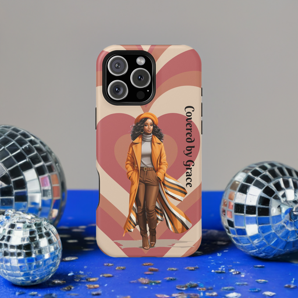 Step into divine protection and elegance with the Covered By Grace iPhone MagSafe Case—designed for high-vibrational women who walk in faith, confidence, and abundance.